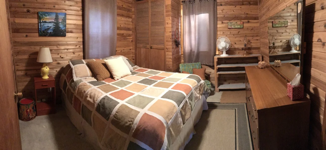 Dave and I have been fine with the double bed. Our most frequent visits to the lake are in spring and fall, when the nights are cooler and a little extra body heat is welcome. Because we make Lloyd’s Landing available to guests in the summer, we are almost never there in the dog days of summer, when the touch of another sweaty body is torturous.